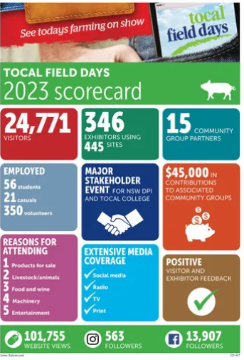 In 2023, Tocal Field Days celebrated 40 years as an event that combines opportunities for agri-business with family entertainment to create an engaging event for local and visiting audiences. Our ongoing research with the event demonstrates its value to the local community and to the visitors who come from both nearby farms, residential towns and major cities.